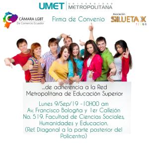 La Cámara LGBT de Comercio Ecuador invita a la Firma del Convenio de Adherencia a la Red Metropolitana de Educación Superior, con la Universidad Metropolitana y la Asociación Silueta X.