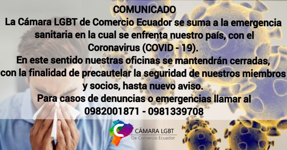 La Cámara LGBT de Comercio Ecuador se suma a la emergencia sanitaria que enfrenta nuestro país, con el Coronavirus (COVID – 19).