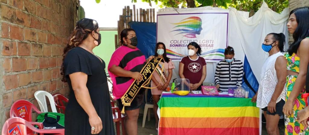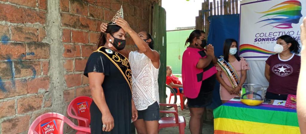 Mensaje de Diane Rodríguez sobre su visita a la Provincia de Manabi: “Finalmente, con el Colectivo Sonrisas Diversas de San Vicente de Manabi, concluimos la tarea de estructurar su directorio organizacional, escogido por unanimidad y adicional una coronación simbólica de una Reina, acto lúdico que practican nuestras poblaciones.